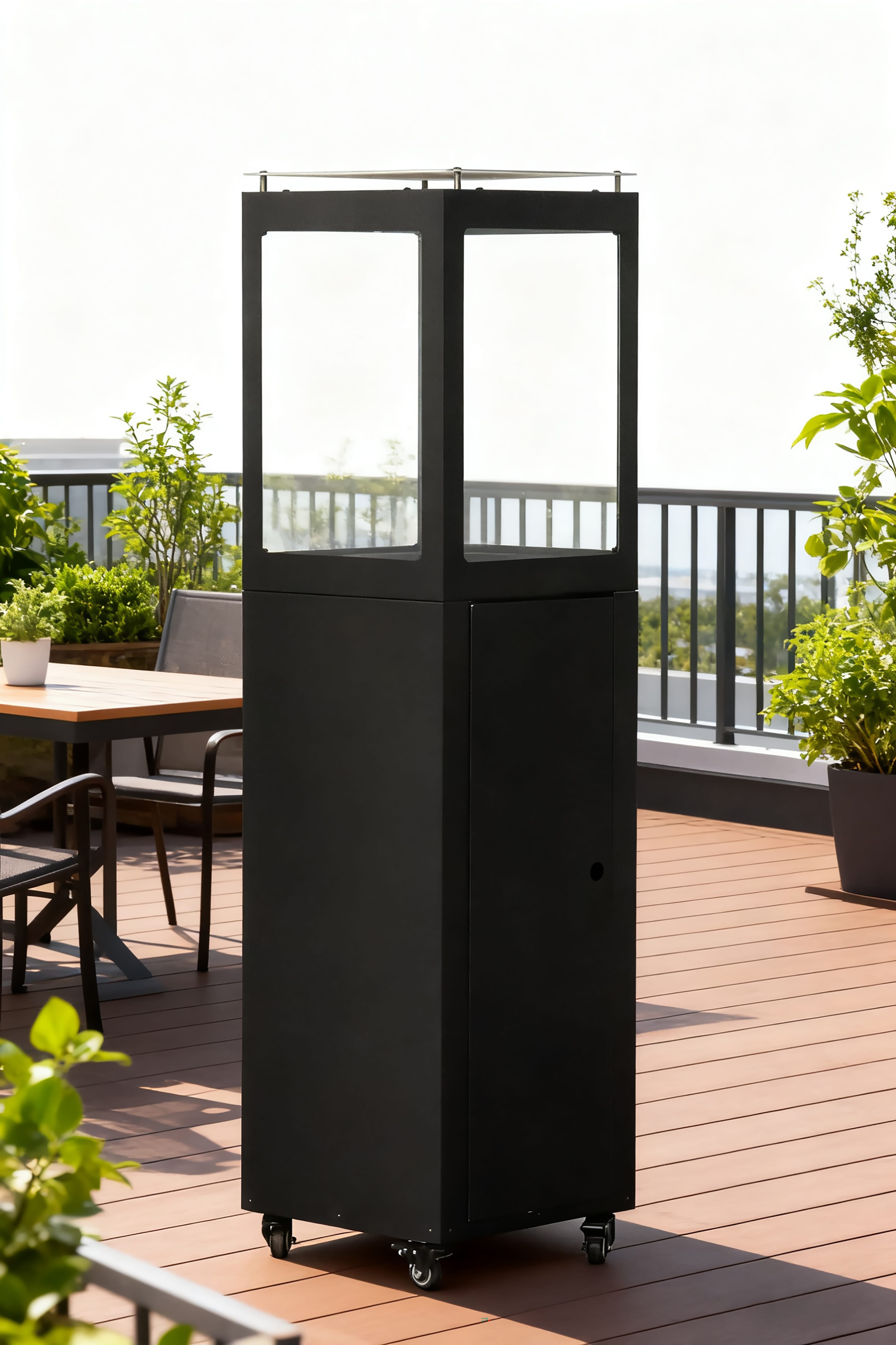 “Last but not least”, our “Lounge Heater BPH-R80” fits perfectly on a small terrace due to its sturdy stainless steel design. Think of your own backyard or that of a Bed & Breakfast.